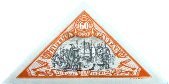 Заснаваньне Вільні Гедымінам у 1323. Марка пошты Летувы, выдадзеная ў 1932