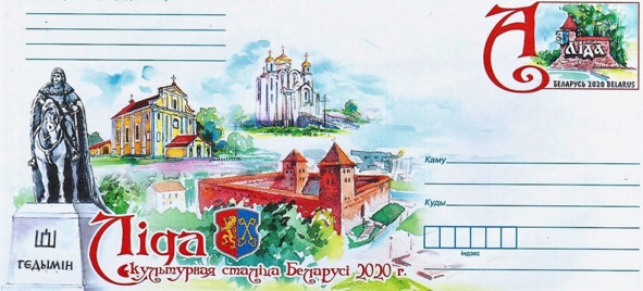 Ліда культурная сталіца Беларусі. Марачны канвэрт, выдадзены поштай Беларусі ў 2020