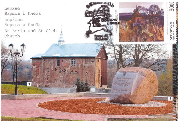 Картмаксімум. Камень Давыда Гарадзенскага ля Каложы. Каложа (1969). Віталь Цвірка (19131993). Марка пошты Беларусі, выдадзеная ў 1998