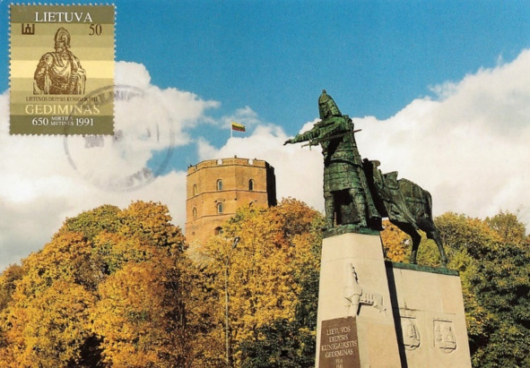 На картмаксімуме помнік заснавальніку Вільні Вялікаму Князю Літоўскаму Гедыміну, які быў адкрыты на Катэдральнай плошчы ў 1996 (скульптар Вітаўтас Кашуба).