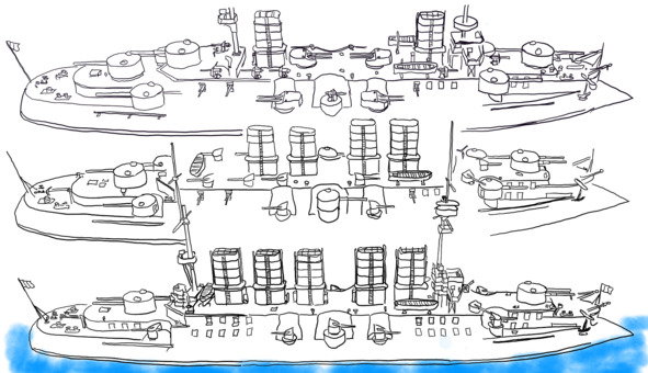 «Да вот кручу верчу проект Сюффрена наиболее нового и совершенного нашего броненосца и ничего не выходит. Вооружение, если оставить главного калибра, и усилить средний путем установки 194-мм орудий, то на каждый борт, по весу, будут вести огонь три башни, остальное место займут спаренные 10-см. Если снизить броню башен, то возможно и еще две в корму поставить, но корабль из надежно защищенного превратиться в картонный, на что я пойти не могу».