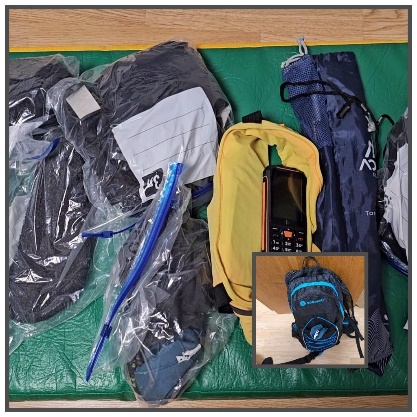 Беговые палки, кроссовки Hoka Spedgoat 5, термофутболка, мембранная куртка, экшн-камера DJ Action 2, фонарь налобный, внешний аккумулятор на десять тысяч миллиампер, беговые носки skinners, на случай если кроссовки развалятся, в которых даже по камням можно идти, питьевой трубкой с фильтрацией, телефоном, аптечкой и набором проводов, тайтсы с шортами, балаклава, бафф, трусы и футболка. Навигация с помощью часов Fenix 6 pro, в которые я трек на каждый день залил, и по телефону через приложение LocusMap, через которое я составляю маршруты. Да, взял с собой ещё простой противоударный телефон с запасной симкой Билайн.