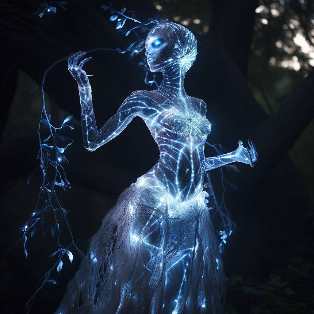 Мы любовались светом звезд на небе, когда заметили, что две из них стали двигаться быстрее других и расти у нас на глазах, пока не превратились в маленькие существа, все тело которых как будто было покрыто мерцающими искрами. Они излучали звездное сияние, бросая мягкий свет на окружающие их предметы. Казалось, что все их тело состоит из лунного света, а сами они невесомые и почти прозрачные. Они, спустившись со звездного неба, приблизились к нам, и оказались очень безобидными и слегка испуганными малышами.
