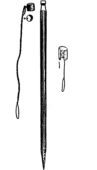 Снаряд, употребляемый при этой охоте, весьма несложен, и каждый может легко устроить его сам. Он состоит из кола, вбиваемого в дно пруда или озера короче, в то место, где желают посадить утку во время охоты. На кол надевают кольцо, сделанное из толстой бересты, так как береста не тонет, а всплывает на поверхность воды; в него вставляется свернутая из гвоздя вертушка, к которой привязывается бечевка аршина в три длиной; вертушка вставляется для того, чтобы мешать бечевке закручиваться. С этой целью последнюю промасливают или, еще лучше, выдерживают сутки в разбавленном наполовину в масле картинном лаке и затем просушивают. Прилаженное таким образом кольцо надевается на кол и вращается на нем совершенно свободно; в противном случае, то есть если кольцо будет вертеться туго, утка, привязанная за ногавку к бечеве, начнет завертывать бечеву вокруг кола и, вследствие этого стесненная в движениях, не будет в состоянии свободно плавать и прибьется к самому колу.