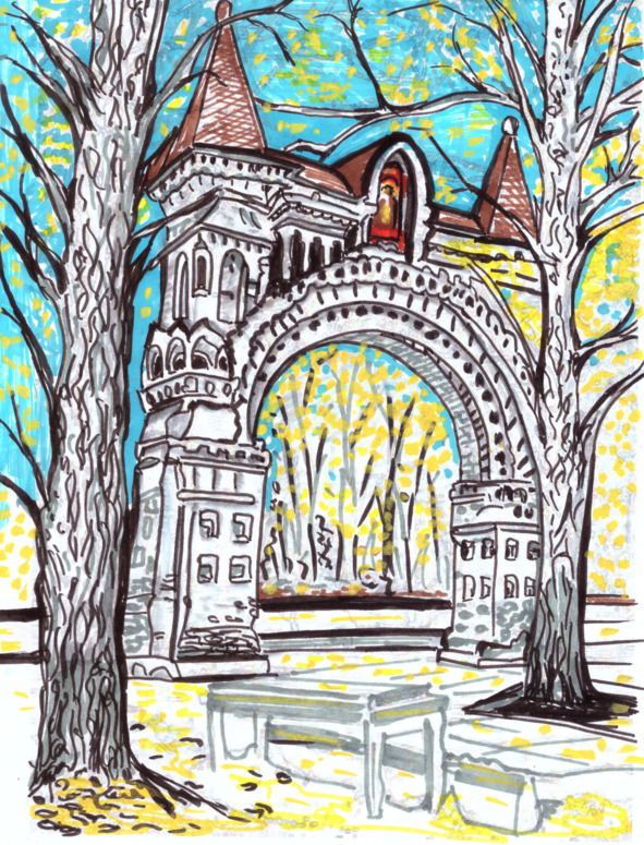 Сегодня мы спустимся к «Ладье» по улице Осипенко, одном из знаковых мест советской эпохи. От старых времен здесь остались только ворота Свято-Никольского монастыря.