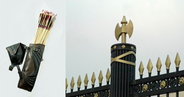 Рис.96 Колчан со стрелами {24}; Рис.97 Фасции на столбах ограды Александровского сада, Москва, Кремль. {25}