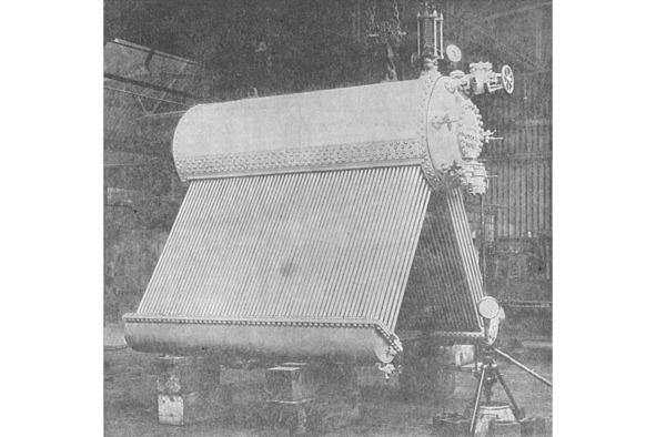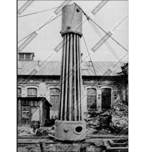 Во время эпидемии Коронавируса были открыты онлайн архивы кинофотофонодокументов Санкт Петербурга. Тогда я нашёл странный котёл «поверхностного нагрева системы «Кахали» (Рис. 130) Этот котёл похож по описанию на котёл из самолёта Гешвенда (он тоже трубчатый). Фото датировалось до 1914 года. Я проводил поиск в интернете, но информации о таком виде котла не нашёл. Я даже не смог найти похожих фотографий или рисунков. Дальше я обратился к Техническому директору «Русспецсталь», Главному инженеру металлургического завода «Красный Октябрь», заслуженному энергетику РФ, к.т.н. Томареву Геннадию Ивановичу, с целью узнать принцип работы этого парового котла и знаком ли он с этой конструкцией. Геннадий Иванович не слышал о такой системе «Кахали» и решил тоже поискать информацию. Через некоторое время он прислал мне ссылки, где упоминается газотрубный котёл и вертикальный водотрубный котёл, но котёл системы «Кахали» он так и не нашёл.
