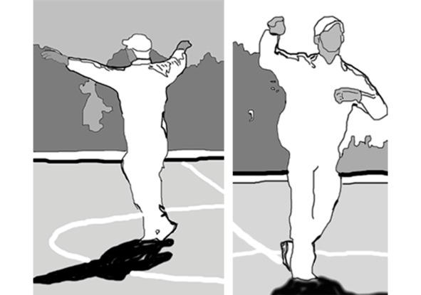 Рис.73 Элемент танца, поднятая вверх правая рука.