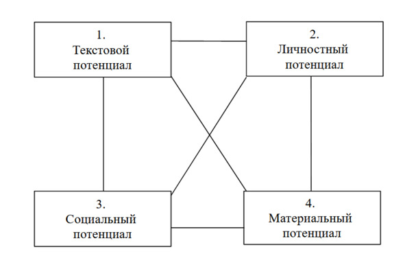 Текстовый потенциал. Совокупность текстов культуры, которыми обладает данное сообщество на тот или иной момент (период) времени. Эти тексты могут быть самого разного типа, но все они функционируют или могли бы функционировать в деятельности тех или иных культуротворческих групп.