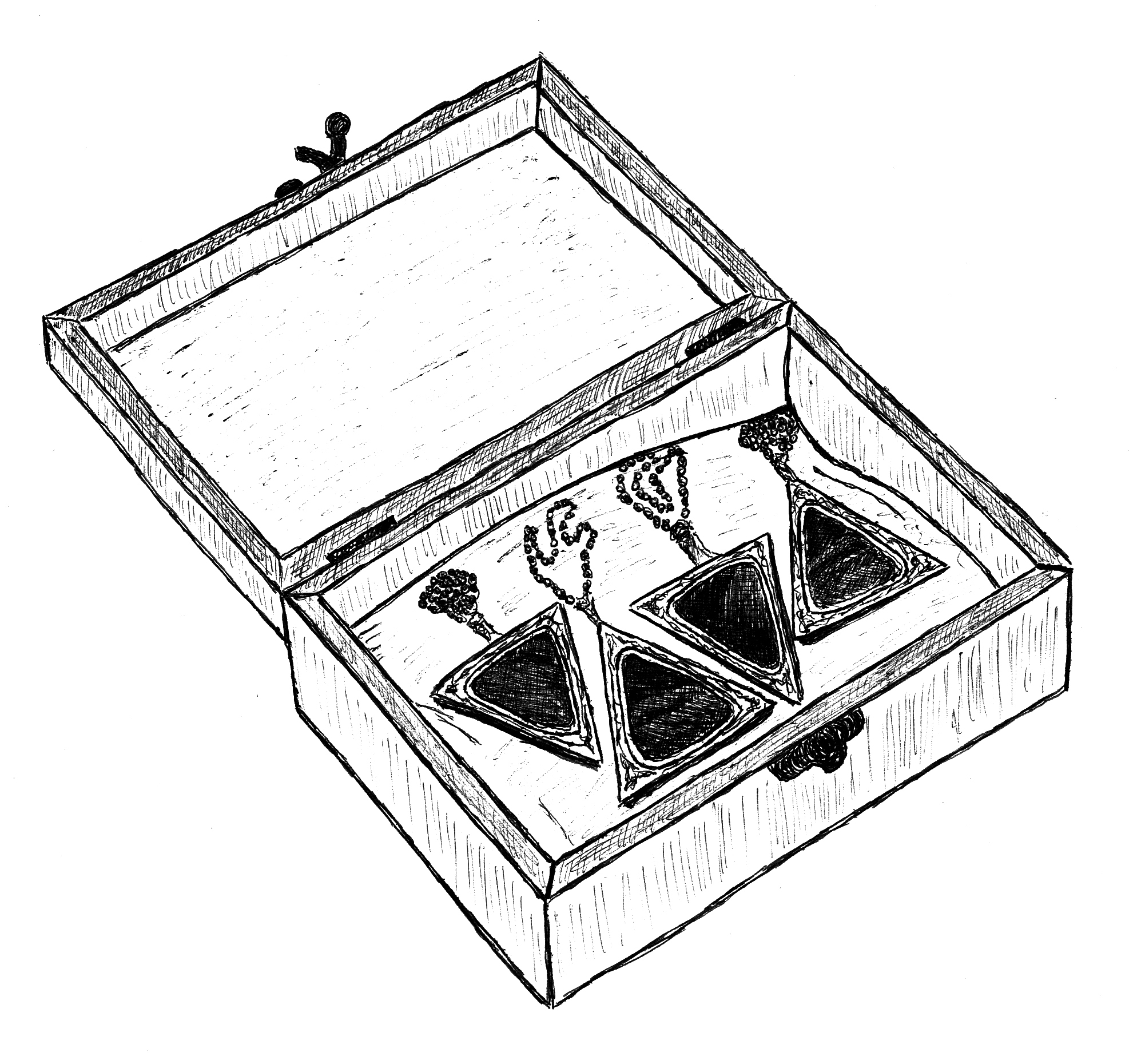 Любопытство пересилило ее, и она медленно открыла шкатулку. Свет тут же пропал. Внутри, на мягком красном бархате, лежали четыре треугольных камешка в серебристых оправах на цепочках. Камешки были из голубого волнистого минерала, гладко отполированного. Дагни с интересом разглядывала камешки, восторгаясь изящными украшениями. Вспомнив про голубое свечение, идущее от шкатулки, девочка решила, что ей это привиделось. И не стала ни с кем делиться этой странностью.