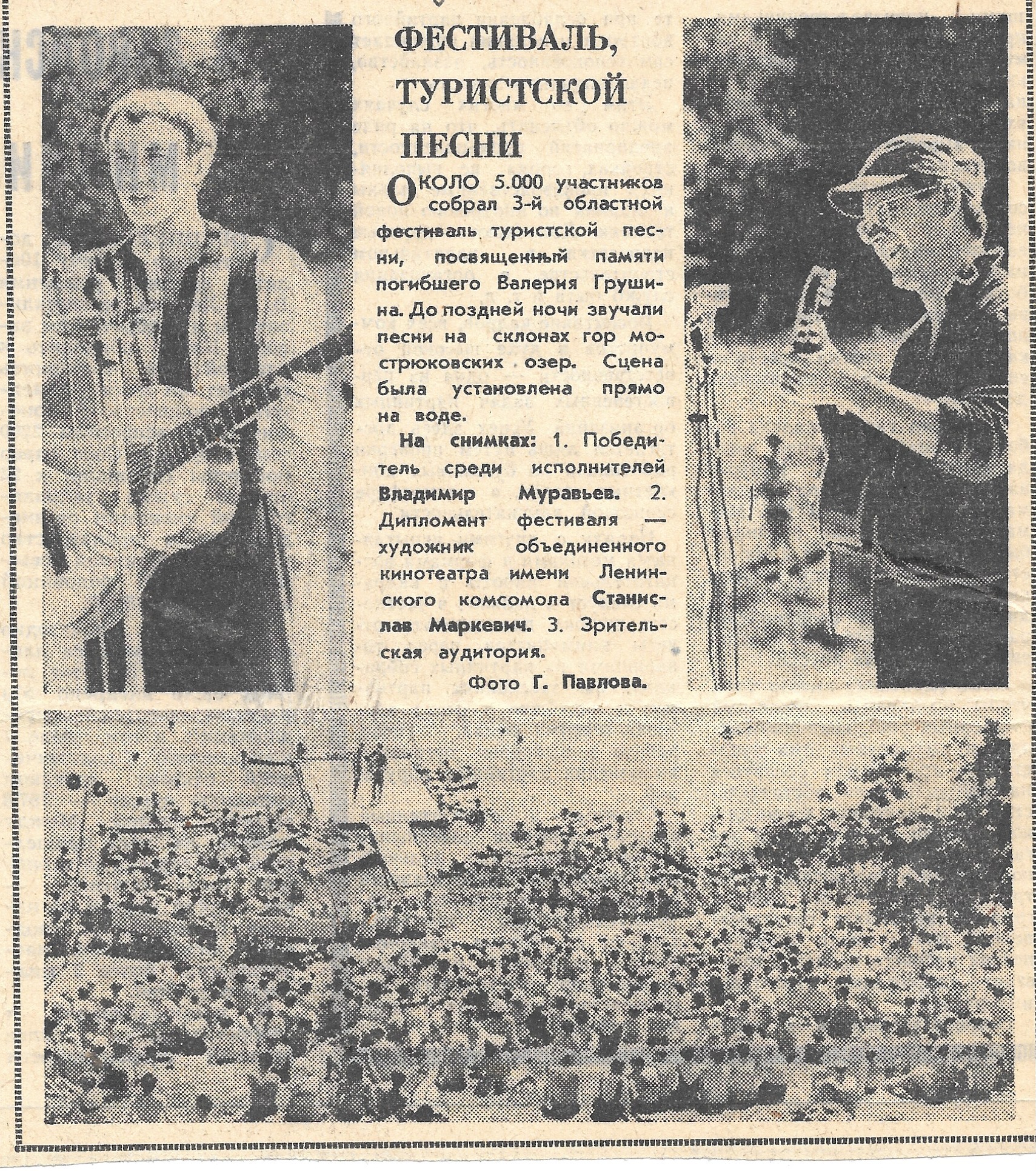 В Смоленске состоялся шестой традиционный Всесоюзный конкурс студенческой и туристской песни, в котором приняли участие коллективы 21 города страны. В старинном русском городе собрались любители песни из Ленинграда и Киева, Минска и Петрозаводска, Ростова и Саратова, Свердловска и Казани, Москвы. Казань представляли студенты медицинского института В. Муравьев, И. Гирфанов и студент авиационного института В. Боков.