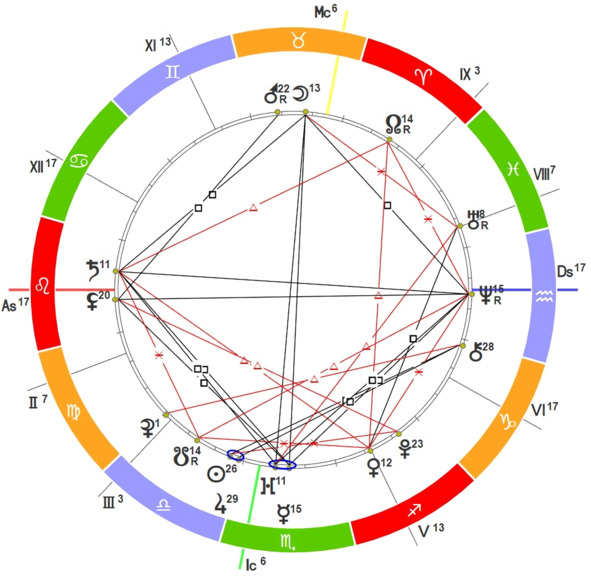 Саида достала свой смартфон и стала в нём что-то делать. А затем показала мне экран. Там я увидела по кругу расположенные обозначения знаков зодиака. Сам круг был разделён на секторы, а внутри прочерчены линии между какими-то символами.
