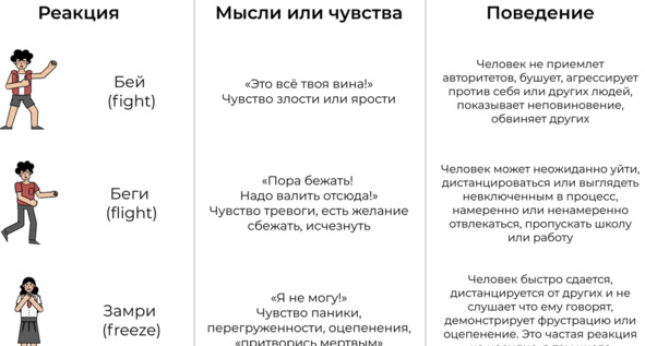 Сквозь века за нами тянутся животные реакции (ведь назвав себя людьми, мы не перестали быть животными). Можно назвать это инстинктами или обратившись к медицине симпатическими реакциями. Это как раз то, что помогает мобилизовать возможности нашего организма в момент стресса. Их немного (всего 4), если мы не пытаемся подойти к вопросу осознанно. Психологи называют их так: