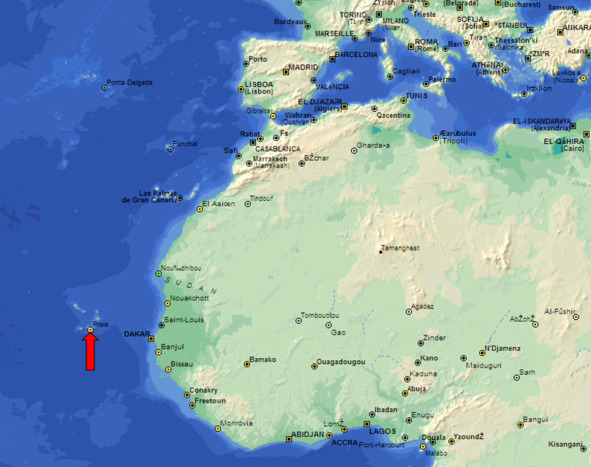 Порто-Прайя (красная стрелка)