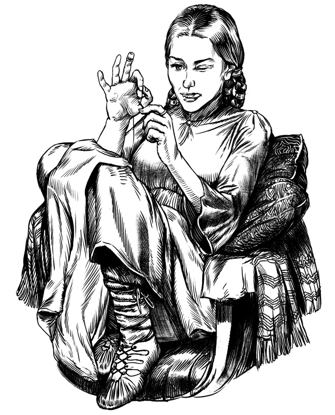 Айорка подбежала к огромному сундуку и принялась доставать оттуда необходимые вещи. Ее руки порхали.
