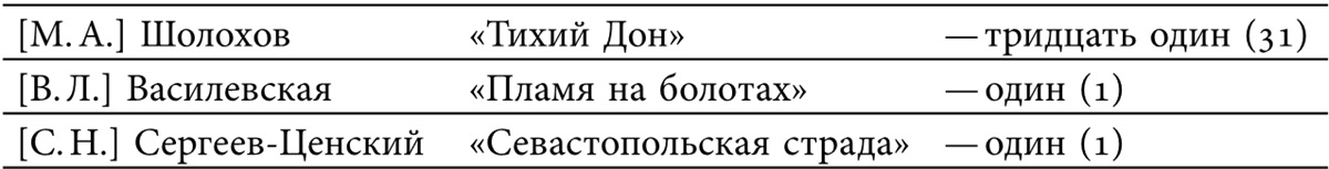 На следующем пленарном заседании Комитета, состоявшемся 21 ноября 1940 года287, предстояло определить порядок голосования. Сомнения некоторых членов Комитета в своей компетентности вполне понятны: с произведениями некоторых кандидатов многие эксперты были знакомы лишь понаслышке (например, Гурвич, подготовивший развернутую рецензию на поэму Асеева, текст Леонидзе не читал, а судил о нем по фрагментам, которые зачитывались на заседаниях). Закономерно встал вопрос о возможности или невозможности воздержаться от подачи голоса на баллотировке. Весомее всего прозвучало мнение Грабаря, убежденного в том, что «тут не может быть места воздержанию при голосовании»288; этого же мнения придерживался и Корнейчук, рассуждавший следующим образом: «мы самая высокая созданная Правительством комиссия: здесь собрался цвет интеллигенции, как здесь можно воздержаться?»28924 ноября 1940 года290 Комитет установил, что на всех бюллетенях следует оставлять незачеркнутым одного кандидата либо вычеркивать все кандидатуры, но не оставлять двух кандидатур незачеркнутыми (кроме бюллетеней по кандидатам от музыкальной секции: Комитету было дано обещание учредить по музыке дополнительную премию)291. Голосование было назначено на 25 ноября 1940 года292 и должно было проходить в помещении МХАТа с 11:00 до 15:00. На заседании счетной комиссии по баллотировке кандидатов на соискание премий293 присутствовали Ю. Шапорин, В. Немирович-Данченко, Р. Глиэр, В. Мухина, Н. Асеев и М. Чиаурели. По итогам голосования294 в разделе литературы установилось следующее соотношение295.