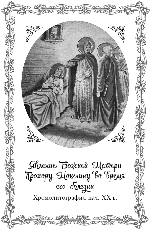 Когда Прохор совсем изнемог, то с детской простой признался настоятелю, что было ему пророчество от киевского старца Досифея о том, что здесь, в обители Саровской, закончит он своё земное странствование. И, прослезившись, тихо проговорил: