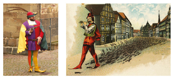 Самым древним свидетельством событий, разыгравшихся семьсот с лишним лет назад, было изображение в оконном витраже церкви на Рыночной площади. Правда, сам витраж не сохранился, но есть его подробные описания, сделанные в XVI веке: вверху человек в пестрой одежде, а под ним молящиеся дети.