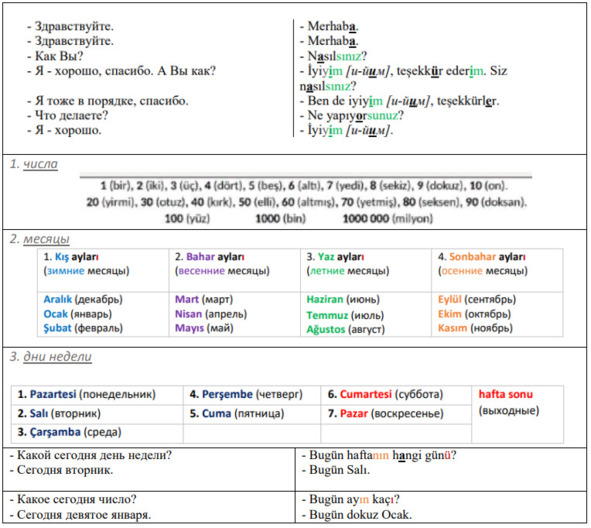 2. Завершив работу над уроком 1, следует, помимо занятий по данному учебнику, факультативно заниматься по книге одноимённого автора «Турецкий язык. Разговорный курс. Книга 1», план занятий расписан в данном учебнике (см. задания типа «Разговорный блок. Интервью 1», «Разговорный блок. Интервью 2» и т. п.).