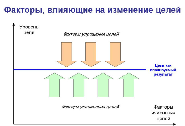 Какие же факторы влияют на усложнение целей? Большинство из них, те же самые, которые способствуют упрощению целей, но действующие в обратном направлении не «вниз», а «вверх»: