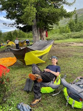 Вася- прирожденный коммерсант! Договориться, купить, продать прям его стихия! Чем занимается Вася: продает недвижимость в Питере, возит ткани из Китая, а здесь шьет из них постельное белье (не сам конечно)), а Надя продает через инстаграмм, продает кровоостанавливающе губки. Я чуть было не приобрела у него коробку губок из 512 штук, так здорово он про них рассказывал И еще у него потрясающее чувство юмора, причем с серьезной миной, меня просто иногда сгибало пополам от его шуток )) Ребята живут в Санкт-Петербурге, вообще они модные такие. Но одежда не слишком подходит для похода, хотя они и не жаловались, но на будущее приглядывали, что прикупить на следующий поход.