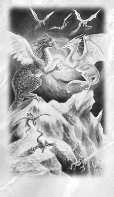 Высоко на горном пике два могущественных дракона держат между собой большой сверкающий хрустальный шар. Хотя природа и стихии драконов различны, они сбалансированы и находятся в идеальной гармонии друг с другом. Положительные и отрицательные энергии, которые они контролируют, ровным потоком вьются вокруг них. Маленькие драконы обозначают жизненные события, привлеченные этой гармонией, события, для разрешения которых необходимы баланс и душевное равновесие. Высокие горы это ворота в духовную реальность. Карабкаться по ним нелегко, путешественник должен проявить усердие и решимость. Однако, взобравшись на вершину, мы наконец-то заново открываем наши духовные связи, а также находим гармонию и баланс, которых жаждала наша душа.