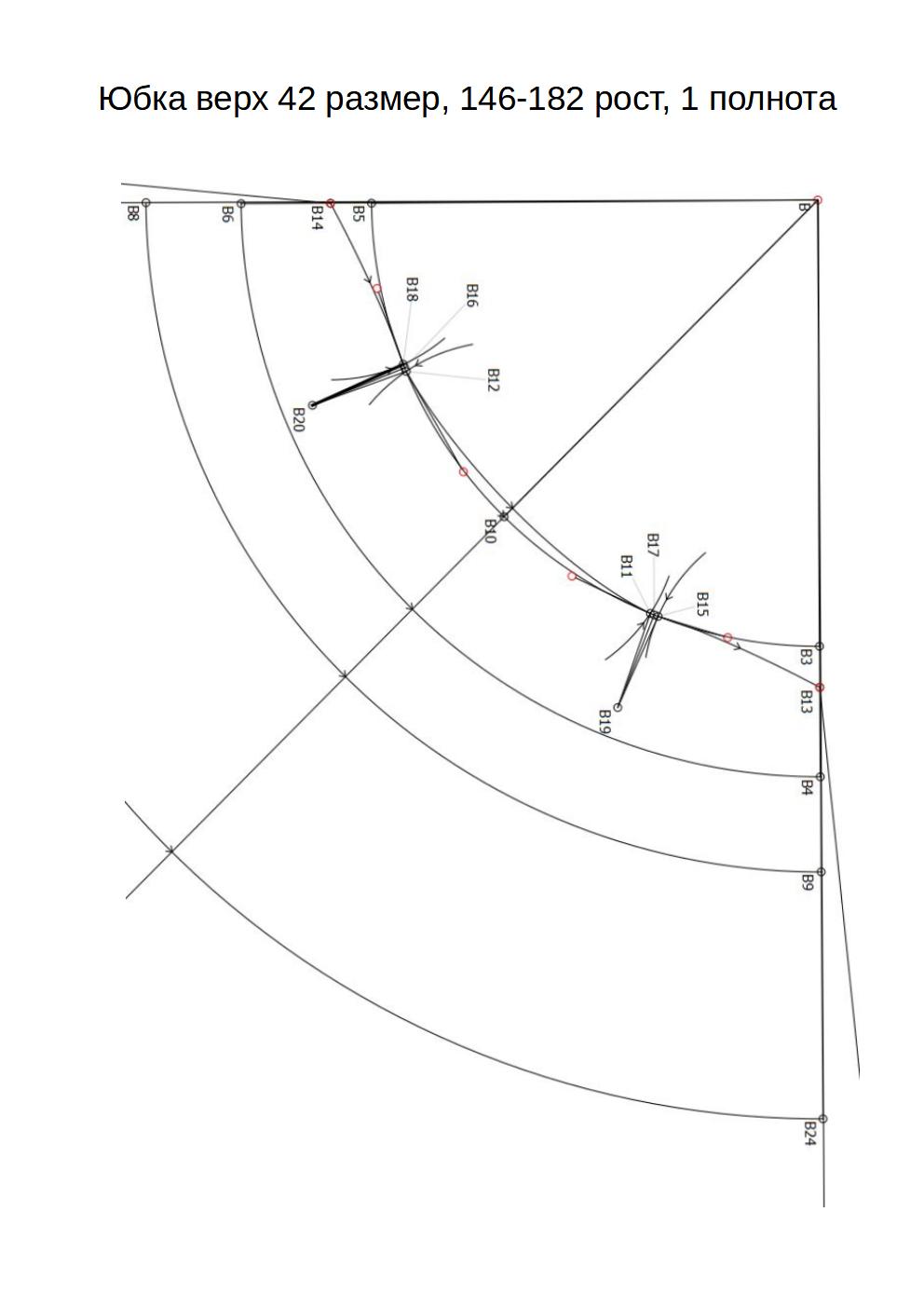 Б25=Б15Б24/3,5=24,5/3,5=7 см расположение вытачки