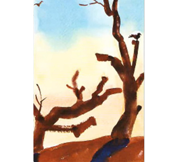 Клиентка: Сухие обломленные деревья. Птичка какая то сидит. Картина безрадостная. Одна сидит, а другая летит вверх. Перейдем в левый верхний угол. У корней этого дерева течет какой то источник. Не смотря на все трудности и этот источник жизненной силы смог дать, то есть из такого сухого ствола, после всех этих происшествий дал жизни. Ее душа была как этот сухой ствол. Тем не менее она имела под собой этот источник силы какой то, который не дал ей остаться этим сухим деревом, не дал ей сломаться. Птиц я восприняла как символ новой жизни.