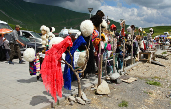 На той стороне вертлявая дорога довольно быстро приводит в сравнительно крупный туристический поселок სტეფანწმინდა (Степанцминда). Начинаются множественные проблемки. Всё, что не в сетевом SPARe, дорого до изумления. Сим-карта за тридцать лари, то есть за тысячу рублей! В Тбилиси, как потом выяснилось за 11 или 14. Тысячу рублей меняют здесь на 3035, а в городах дальше на 4244 лари. Ночь подходит, надо место переночевать искать. Наличные деньги, оставшиеся ещё с 2019 года, ушли на автостраховку и на магазин, кончаются, завтра кровь из носу надо найти обменник, непонятно, как теперь квартиры снимать, ведь Booking всех оккупантов чохом забанил а в Грузии именно таковыми русских и считают, и есть вероятность огрести неприятностей просто за то, что мы русские и флаги запрещенных у нас цветов повсюду то вывешены, то нарисованы и неприятные для русских надписи