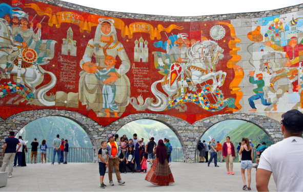 Да какая разница! Да никакой вообще, понимаете? Мы же в Грузии! У нас получилось! У нас есть пирожки (правда, их уже становится уже немного меньше, дети заедают ими расход нервов), у нас есть прекрасный местный лимонад «Зедазени», у нас есть уверенность, что теперь-то мы доедем до Турции! Ну до границы хотя бы У нас есть великолепные горы вокруг! Почему-то со стороны России вдоль дороги они значительно скромнее смотрятся. Казбек на фоне заката вообще шикарен с центральной (и единственной) площади Степанцминды.