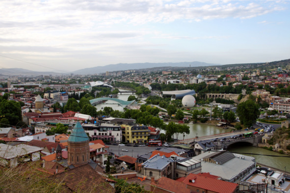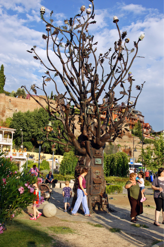 Погулять в Тбилиси, и вправду, есть где. Центральная часть города небольшая, но очень разнообразная. Здесь и старые достопримечательности красивые, и новые здания очень непохожи на российские «кубики». Вот крыша из гигантских бетонных лепестков. Вот музыкальный театр из двух «труб» переменного сечения. Прекрасные памятники, где-то даже русские надписи на них сохранились. В царские времена, да и в сталинские, немало денег вкладывалось будущими оккупантами в развитие этой местности.