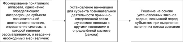 Алгоритм рис. 1 представлен в виде фреймовой схемы каркаса (фрейма [10]), который может быть применён в неизменном виде к любой единице познавательной деятельности. Содержательная сущность структуры познавательной деятельности выявляется в «свёртке» алгоритма рис. 1 до блочного представления «язык» «закон» «задача», описанного в работах [30, 33].