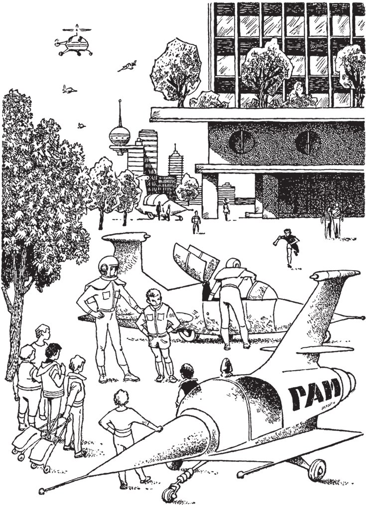Он посмотрел на ребят, потом радировал из своей машины на ракетно-ремонтный завод, где работал мастером отец Колесникова, и через десять минут голубой служебный авто-вертолет повис над двором, опустился, и из кабины вылез Колесников-отец, низенький и широкоплечий, как и его сын.
