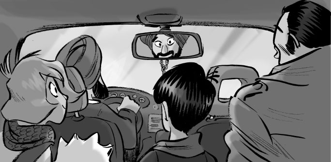 Выйдя из терминала аэропорта, двое ребят и дворецкий уселись в кеб[7]. Таксистом оказался элегантный индиец-сикх[8]. Он носил длинную бороду и шёлковую чалму.