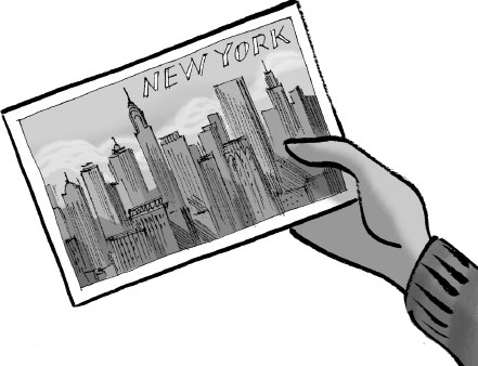 Девочка подошла к столу, порылась в полученных поздравительных открытках и вытащила ту, которую держала в руках несколько часов назад. На ней как раз был силуэт Нью-Йорка в лучах закатного солнца.