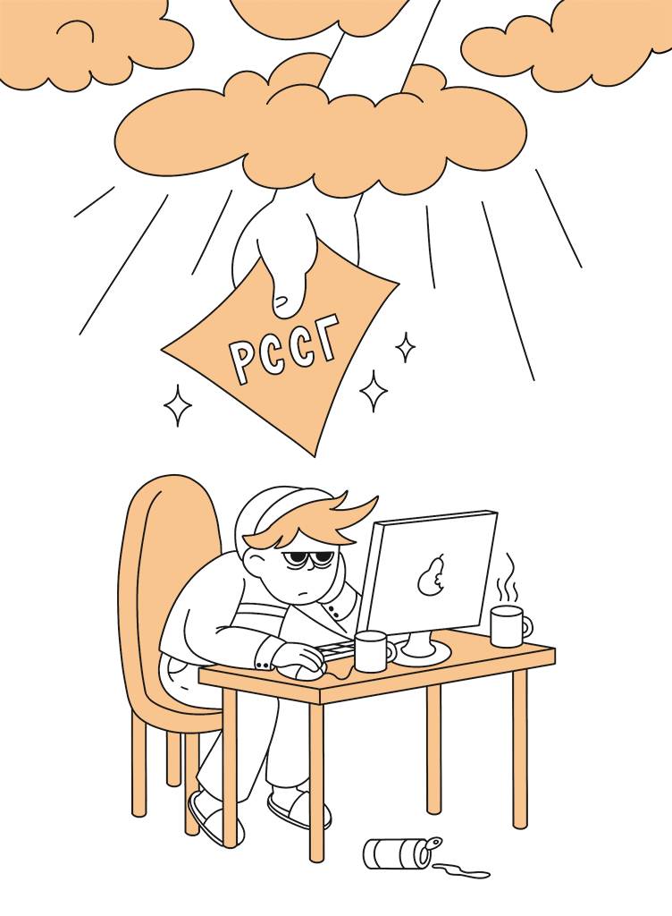 Хочу сделать важную ремарку: техника РССГ это не индульгенция на халтуру и работу спустя рукава. Хуже непрофессионала только непрофессионал, который считает себя гением. РССГ это про то, чтобы разобраться в правилах и пробовать их нарушать, даже если получается какая-то дичь. Поэтому, если ты плохо ориентируешься в типографике, группировке, иерархии, контрастах или просто имеешь плохой вкус, нужно это исправить, нужно заложить базу. Например, дизайнер знает, что на сайте есть заголовок H1, и он самый крупный и находится на главном экране. Выучил? Молодец. Давай нарушать, например, так: