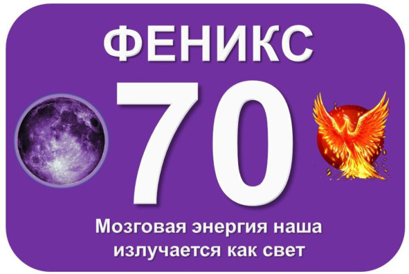 Очень красивый 70-летний юбилей. Яркое свечение Феникса в сочетании с Лунной энергией способствуют озарению и получению новых знаний. Положительное влияние семьи значительно способствует достижению значительных успехов духовного развития.