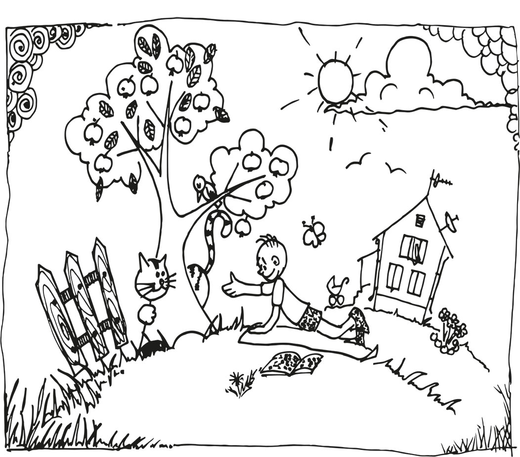 Однажды в конце лета, накануне первого осеннего месяца сентября, стояла теплая солнечная погода, и Кирюша с Андрюшей лежали на одеяле под яблоней. Кирюша рассказывал сказку про Кота в сапогах и уже дошел до страшного места, когда огромный великан-людоед уже, приготовился съесть кота, превратившись в льва, как кот пошел на хитрость и предложил великану превратиться в мышь, чтобы съесть ее, а значит, самого великана.