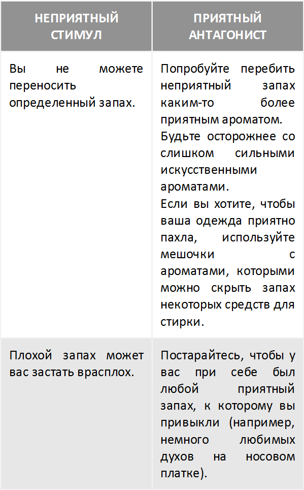 Его реакция была преувеличенна? Возможно. Но я его понимаю, потому что и сама не могу переносить некоторые ароматы. Именно поэтому я всегда ношу с собой шаль, опрысканную духами, а в моей сумочке лежит небольшая упаковка тайской мази от простуды. Где-то воняет? Я сразу же мажу мазью нос, а лицо опускаю в шаль. Из-за этого многие думают, что я постоянно простужена, но нет. Просто от плохого запаха я моментально теряю равновесие.