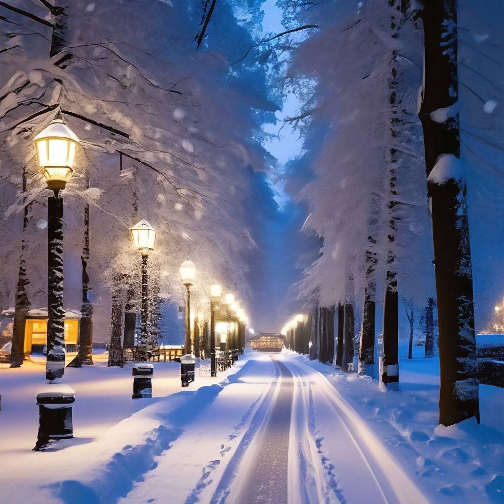 Темные дворы освещали фонари, а снег искрился как новогодняя ёлка. На улице ее встретила настоящая вьюга, сильный ветер закручивал снежинки в снежные ураганы.