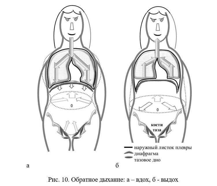Обратное дыхание является основой выполнения медитативных даосских практик. При этом важно оставаться расслабленным, чтобы не нарушать потоков перемещения ци (рис. 10):