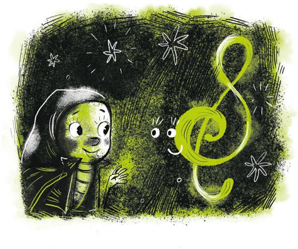 Червячок не ожидал, что у него будет такой замечательный экскурсовод. Певучим голоском Хранитель музыки рассказывал о том, как устроен рояль, почему его тело так странно изогнуто, для чего сделаны молоточки и педали, зачем белые клавиши чередуются с чёрными. Кстати, выбраться из рояля было совсем нетрудно: лазейки встречались тут и там. Но червячку Игнатию пока не хотелось выбираться. «Подожду, пока стрекозка Зоя прилетит с подмогой, подумал он. Приятно, когда тебя хотят спасти, зачем же мешать этому?»