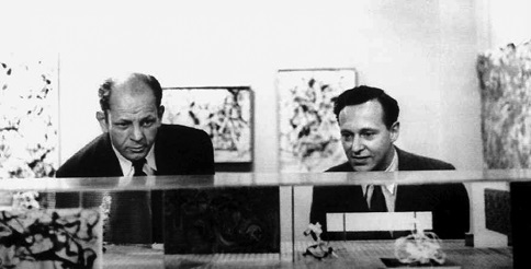 Ил. 1. Дж. Поллок и архитектор П. Блейк перед моделью «Музея Поллока» на выставке в галерее Бетти Парсонс. 1949. Photo: Ben Schultz. Reproduction photographique dans le cadre de la présentation des Collections Contemporaines, niveau 4, avril 2011. © Allan Kaprow Estate. Photo credits: Georges Meguerditchian Centre Pompidou, MNAM-CCI/Dist. RMN-GP. Image reference: 4N51523