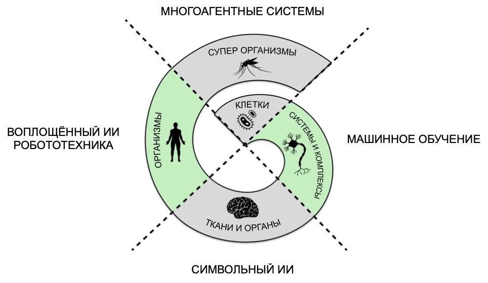 Здесь важно отметить, что эволюционный подход, который охватывает, по сути, все уровни организации жизни и позволяет находить и создавать решения во всех направлениях искусственного интеллекта, открывает путь к так называемой «искусственной жизни» научной дисциплине, которая изучает жизнь через моделирование жизненных процессов в компьютерных или иных моделях.