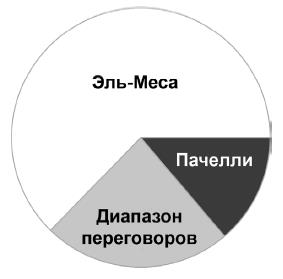 Отмечу, что новый диапазон не включает предыдущее деление, Эль-Меса явно должны быть недовольны. Но это не означает, что они должны вторгаться на территорию Пачелли, чтобы забрать добычу, соответствующую их новому могуществу. Банде Эль-Меса нет необходимости развязывать войну, В свою очередь в интересах Пачелли постараться удержать Эль-Меса от нападения. Они предпочтут торговаться, а не воевать и, возможно, уступят несколько точек или, скажем, будут ежегодно выплачивать противнику дань.