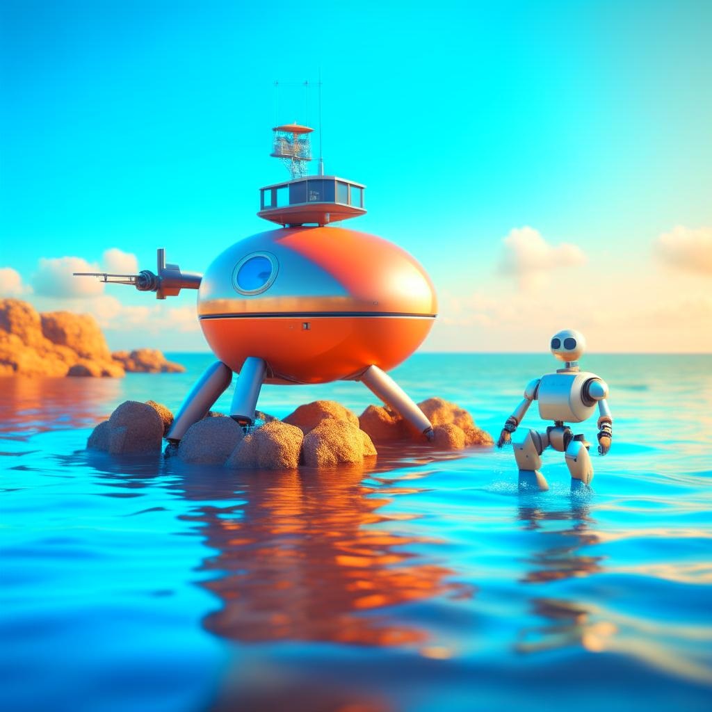 Робот Борис залез в батискаф, переключил рычаг, нажал круглую красную кнопку и медленно начал опускаться на морское дно. Ему было очень страшно, но он все равно не хотел вылезать. Батискаф загудел и зашумел и все глубже погружался в море.