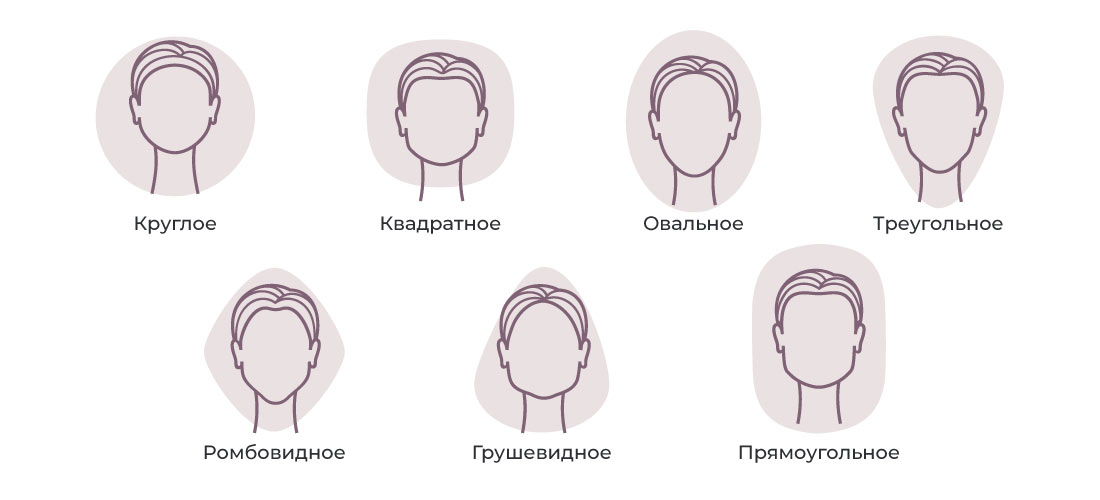 Выделяют 4 основных типа лица: круглое, квадратное, треугольное и овальное. Также можно выделить три подтипа ромбовидное и грушевидное (как разновидности треугольного) и прямоугольная форма (как разновидность квадратного типа).