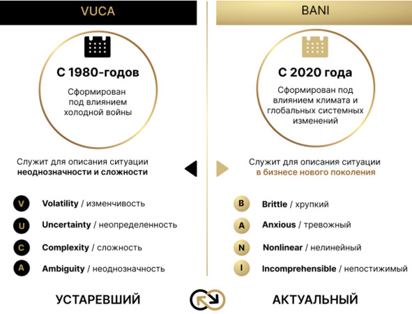 Что же происходит? Давайте разбираться! Вы заметили, как на смену VUCA-миру (сложному, нестабильному, неопределенному, неоднозначному) пришла теперь новая реальность BANI-мир? Рисунок 1.1.