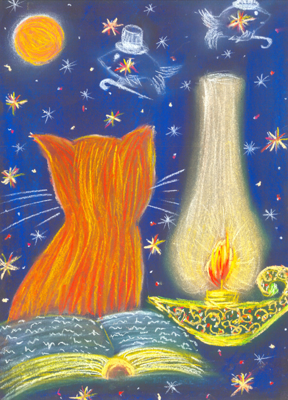 И мы исчезли в тумане, а когда он рассеялся, я оказалась в коридоре гигантского Читального Зала с многочисленными высоченными стеллажами по обе стороны. Плотные и совсем призрачные души в одеждах совершенно разных веков и народов искали здесь нечто, забираясь на стремянки, или просто шагали по воздуху, периодически зависая над найденным, а некоторые сидели с книгами за столиками у старинных ламп и фонарей и пили чай или кофе.