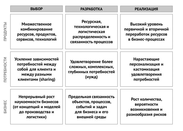Таблица 4. Матрица нарастающего усложнения процессов в цифровой экономике.